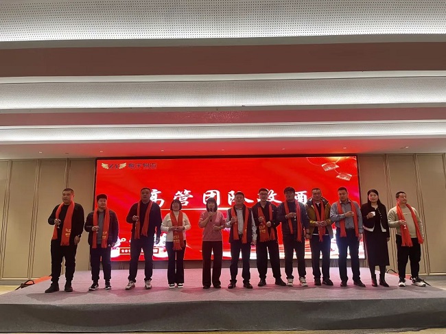 年會上,董事長張憲振與副董事長高巖帶領(lǐng)高管團隊登上舞臺,向在場的每一位家人敬酒。他們舉杯共祝,感謝每一位員工的辛勤付出,并發(fā)表了深情的祝酒詞。他們的話語中充滿了對公司的熱愛和對未來的憧憬,也表達了對全體員工及家人的美好祝愿。