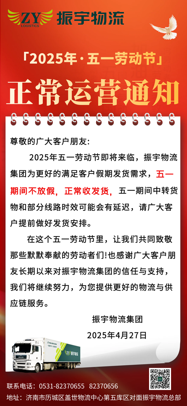 振宇物流集團(tuán)丨五一期間正常運(yùn)營通知